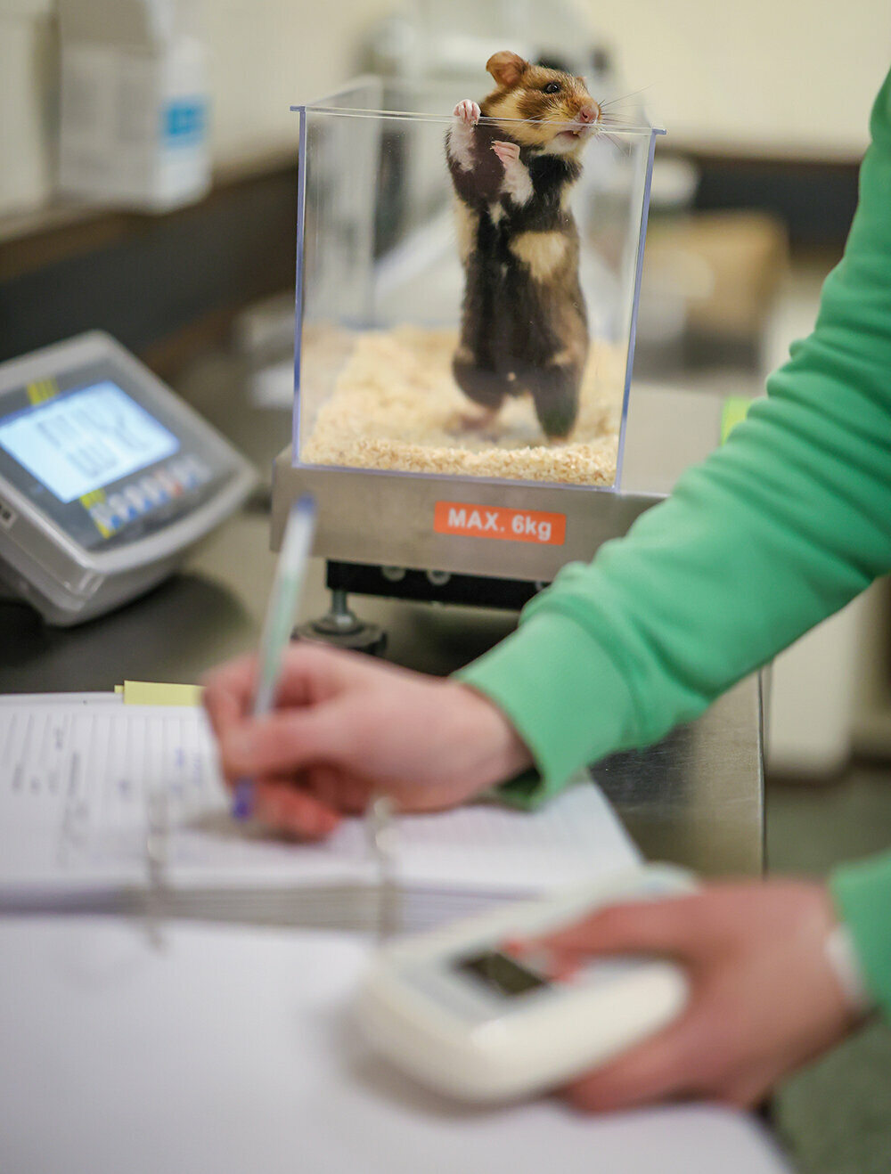 Wichtig ist in der Zucht, dass die Genetik regelmäßig durch Tiere aus anderen Zuchtstationen wie dem Gaia-Zoo oder Rückfängen von den Auswilderungsflächen aufgefrischt wird. „Wir müssen die Zucht genetisch möglichst breit aufstellen, weil es ansonsten zu einer Inzuchtdepression und damit zu Erbkrankheiten kommen kann“, sagt Anika Hirz, die regelmäßig das Artenschutzzentrum in Metelen besucht. Um zu wissen, wie hoch der Inzuchtfaktor bei den Feldhamstern ist, nutzt sie eine Software. Damit lässt sich berechnen, welche Tiere miteinander verpaart werden können. Der Austausch mit der internationalen Feldhamster-Community ist für das LANUV-Team aber ohnehin sehr wichtig. So kamen im Oktober auf LANUV-Einladung Forscherinnen und Forscher zu einer Tagung nach Köln, um sich über den Zustand der Feldhamsterpopulation in Europa auszutauschen.