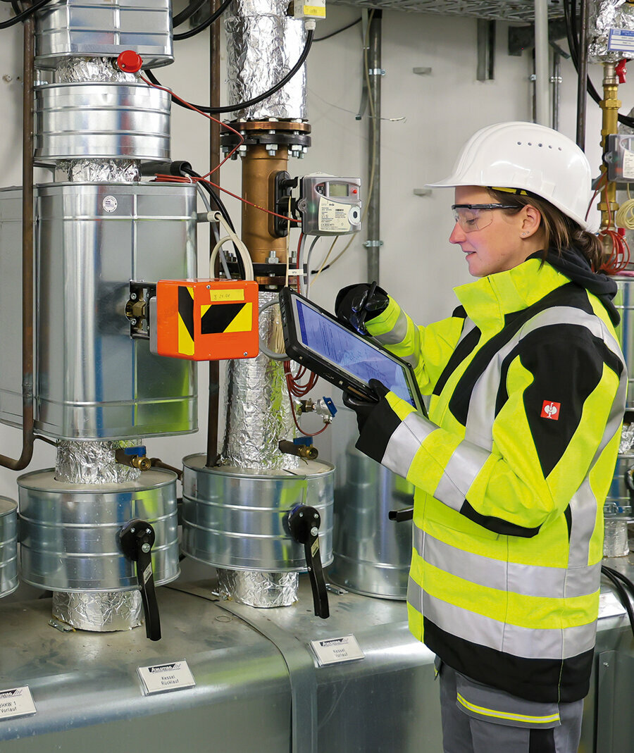 Die Vor-Ort-Kontrollen absolvieren die LANUV-Kontrolleurinnen stets in Schutzkleidung, also Helm, Gehörschutz und Sicherheitsschuhen, je nachdem, welche Anlage sie aufsuchen. Bei den Einsätzen sind die beiden auch an außergewöhnlichen Orten unterwegs, wenn dort gemessen wird: In einem Chemiebetrieb in Düsseldorf mussten sie beispielsweise eine 40 Meter hohe Steigleiter erklimmen, um an einem Schornstein eine Messung zu kontrollieren. Für jede Messstelle haben sie eine Checkliste verfasst, um für die Auditierung der Messinstitute bestens vorbereitet zu sein. So muss zum einen der regelkonforme Aufbau der Messstrecke passen, zum anderen muss die Messausrüstung funktionsfähig sein. Immer wieder kommt es beispielsweise vor, dass diese nicht auf dem neuesten Stand ist, Leitungen defekt oder Zertifikate etwa von Prüfgasen abgelaufen sind. Zu den Vor-Ort-Terminen verfassen die beiden dann Protokolle.