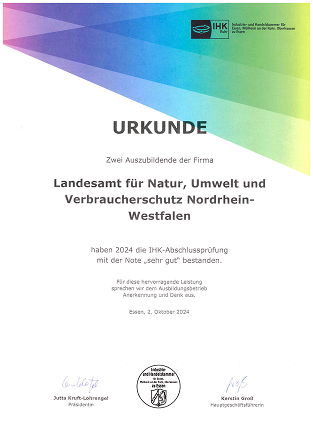 Das LANUK bietet die Möglichkeit, einen nach dem Berufsbildungsgesetz anerkannten Ausbildungsberuf zu erlernen. Auch das duale Studium Verwaltungsinformatik – E-Government (Abschluss Bachelor of Science) wird beim LANUK angeboten.