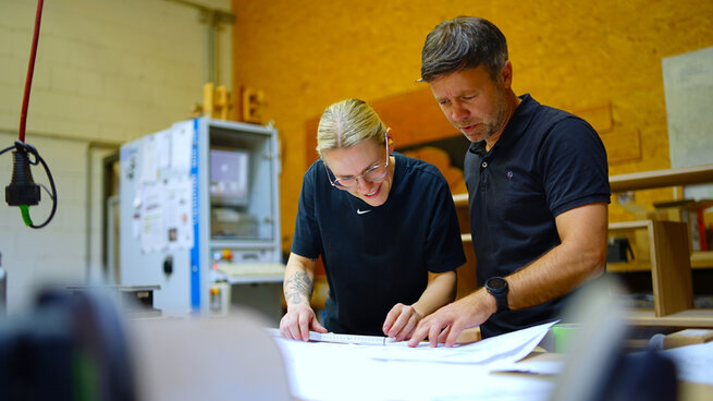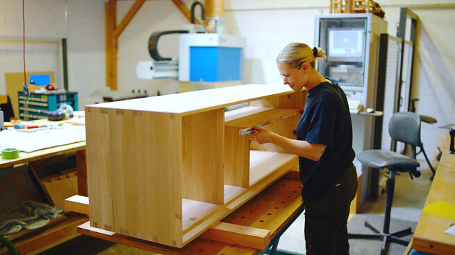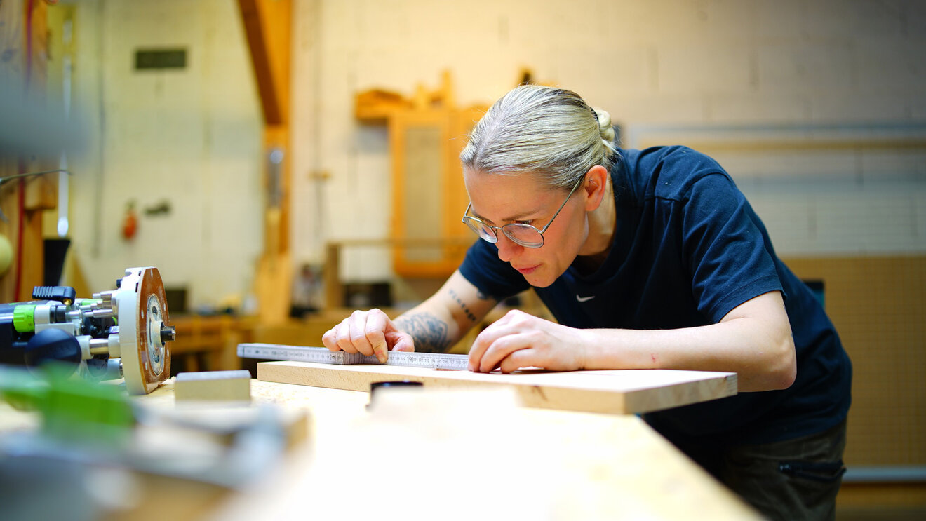 Das Landesamt für Natur, Umwelt und Klima NRW bildet in der Holzwerkstatt in Herhahn (Nationalpark Eifel) Tischlerinnen und Tischler aus.