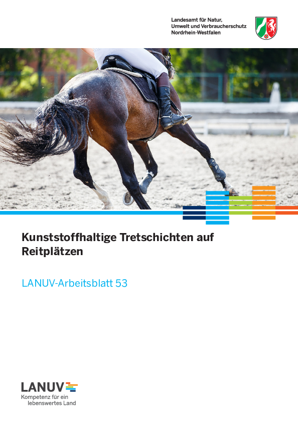 Das Arbeitsblatt beschreibt Anforderungen an die Verwendung kunststoffhaltiger Tretschichten auf Reitplätzen, insbesondere in Hinsicht auf den Umweltschutz und das Abfallrecht sowie die Entsorgung nach Gebrauch. Dabei sind sowohl Sand-Kunststoffgemische als auch vollsynthetische Tretschichten, z. B. aus aufbereiteten Teppichresten, als kunststoffhaltige Tretschichten zu verstehen.
