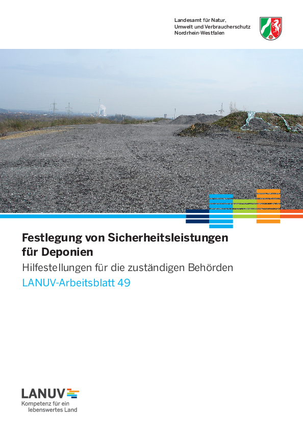 Die Sicherheitsleistung soll die Kosten abdecken, die für einen geordneten Abschluss der Deponie ohne eine Beeinträchtigung des Wohls der Allgemeinheit anfallen. Eine Abschätzung bzw. Prognose dieser Kosten erweist sich in der Regel als schwierig. Dieses Arbeitsblatt soll den zuständigen Behörden Hinweise und Hilfestellungen für die Festlegung von Sicherheitsleistungen geben.