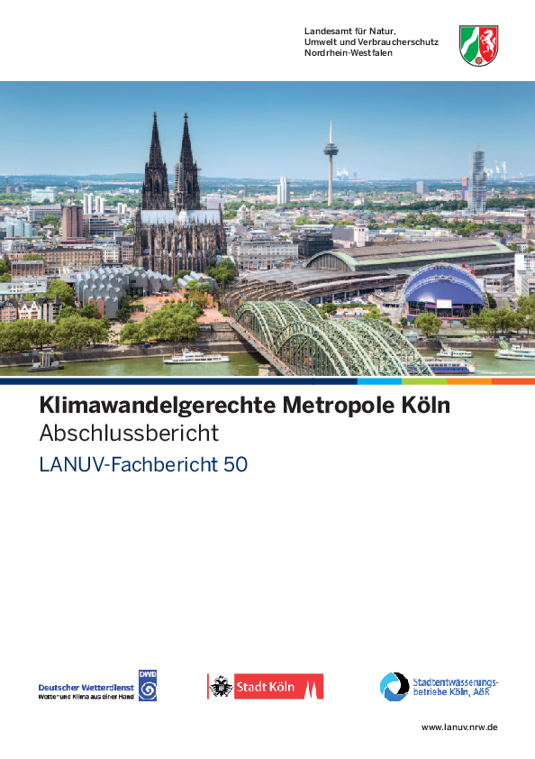 »Klimawandelgerechte Metropole Köln« ist ein gemeinsames Projekt vom Landesamt für Natur, Umwelt und Verbraucherschutz, dem Deutschen Wetterdienst, der Stadt Köln und den Stadtentwässerungsbetrieben Köln AöR.