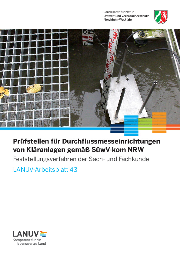 Näheres zu der Durchführung der Prüfungen und technische Beschreibungen finden sich im Arbeitsblatt „Durchflussmessungen auf Kläranlagen“, soweit es sich nicht aus Anlage III SüwVkom ergibt. Geeignete Formulare befinden sich im Anhang zu diesem Arbeitsblatt bzw. im Internet unter www.lanuv.nrw.de.