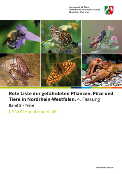 Die als LANUV-Fachbericht 36 vorliegende 4. Fassung der Roten Liste der gefährdeten Pflanzen, Pilze und Tiere in NRW analysiert die Gefährdungssituation von 22 verschiedenen Artengruppen mit insgesamt ca. 11.500 Arten. Aufgrund des Datenumfangs erscheint diese Rote Liste erstmals in zwei Bänden. Die beiden Bände der Roten Liste NRW können einzeln oder zusammen bestellt werden.