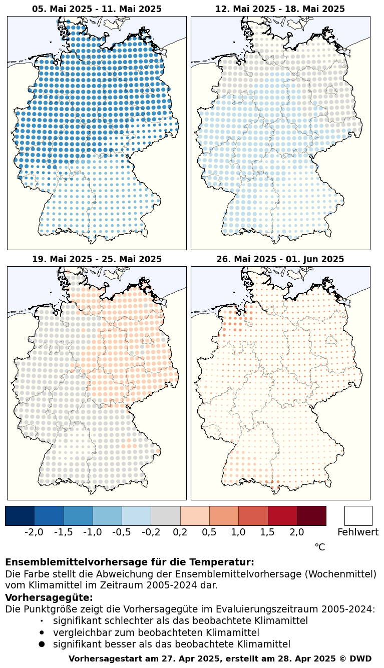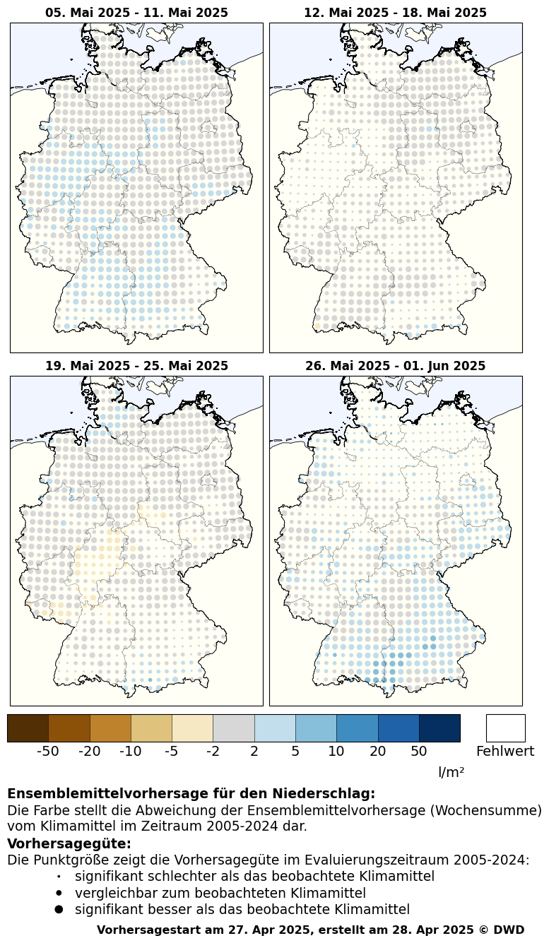 Im kommenden Monat sind die Voraussetzungen für Grundwasserneubildung aufgrund der geringen Bodensättigung und der begonnenen Vegetationsperiode sowie steigender Temperaturen eher als ungünstig einzuordnen. Die regionale Grundwasserstandsentwicklung hängt jedoch maßgeblich von den lokalen Witterungsverhältnissen und den hydrogeologischen Gegebenheiten ab. Weiterführende Informationen zur prognostizierten überregionalen Entwicklung der Grundwasserstände liefert die Fachanwendung GRUVO der Bundeanstalt für Geowissenschaften und Rohstoffe (https://gruvo.bgr.de/website/index.php).