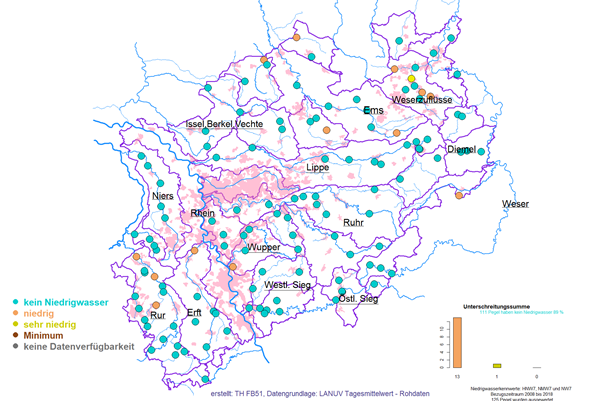 Hinweis: Im Zuge der Auswertung der Grundwasserstände wurden für jede Grundwassermessstelle die aktuellen Messwerte des Auswertemonats mit allen für die Messtelle zur Verfügung stehenden Messungen im Auswertemonat verglichen und klassifiziert. Bei den o.g. Auswertungen handelt es sich um eine rein statistische relative Bewertung. Sehr niedrige oder Minimalgrundwasserstände sind nicht gleichzusetzen mit einem Mangel der Ressource Grundwasser.