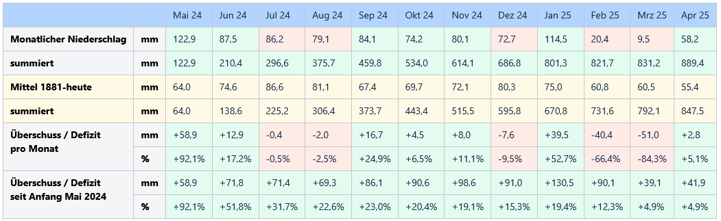 Im Vergleich zu den langjährigen Beobachtungen für diesen Monat lassen sich die aktuellen GW-Stände im April wie folgt einordnen: