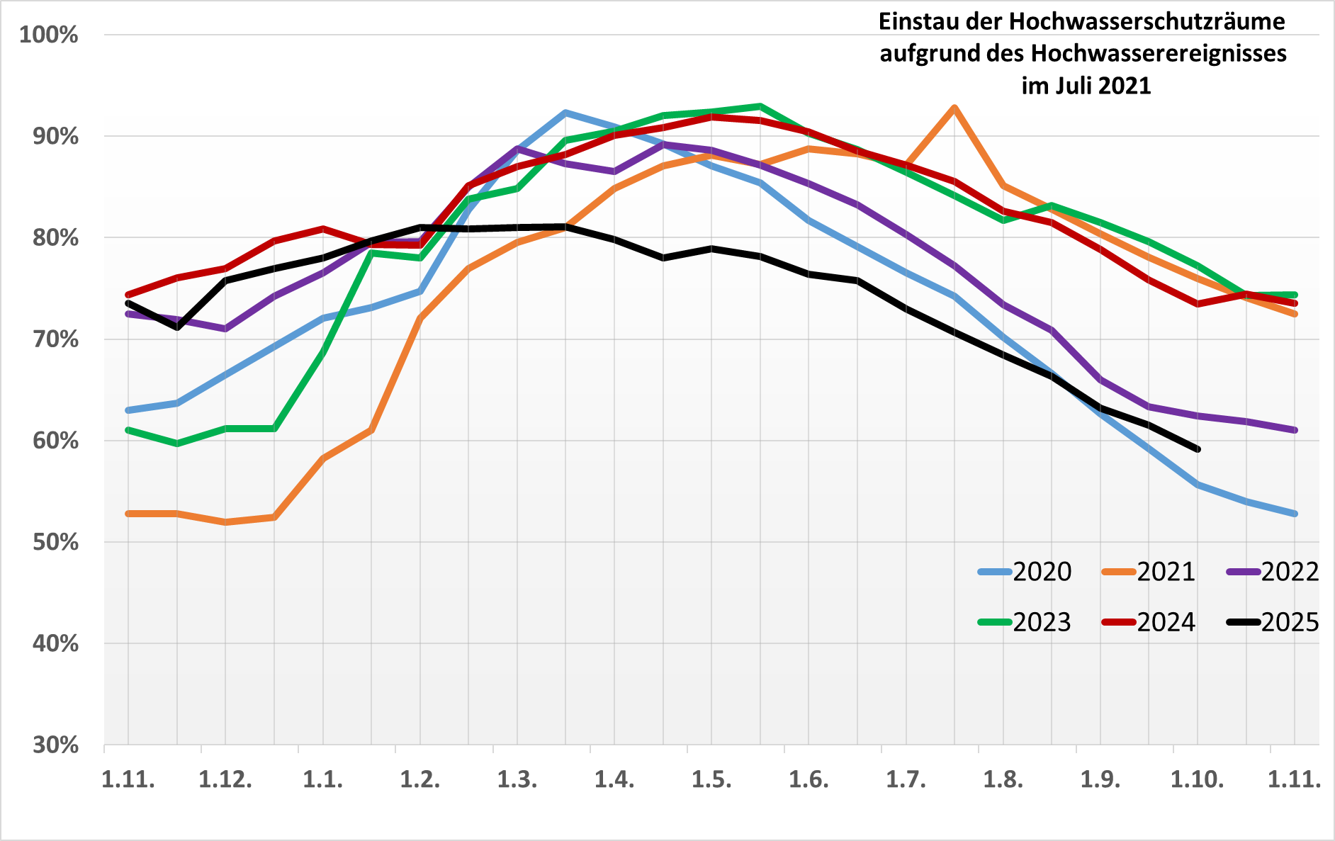 Differenziert nach Einzugsgebieten stellt sich die Situation der Talsperrenfüllstände wie folgt dar (Stand: 30.09.25):