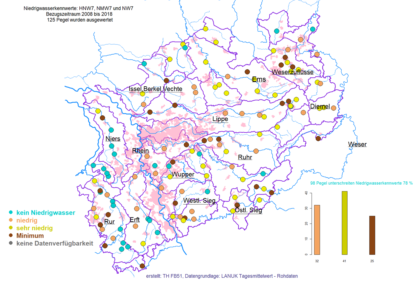 Die Auswirkungen der überwiegend zu trockenen vergangenen sieben Monate sind weiterhin anhand der Entwicklung der Grundwasserstände (GW-Stände) erkennbar. Unter Berücksichtigung der Jahreszeit befinden sich die GW-Stände auf einem niedrigen bis mittlerem Niveau.