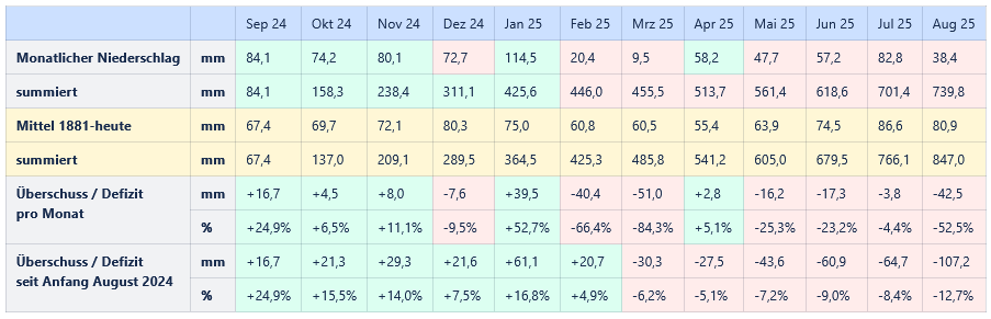 (Datenquellen: DWD, LANUK; Stand: 02.09.25)